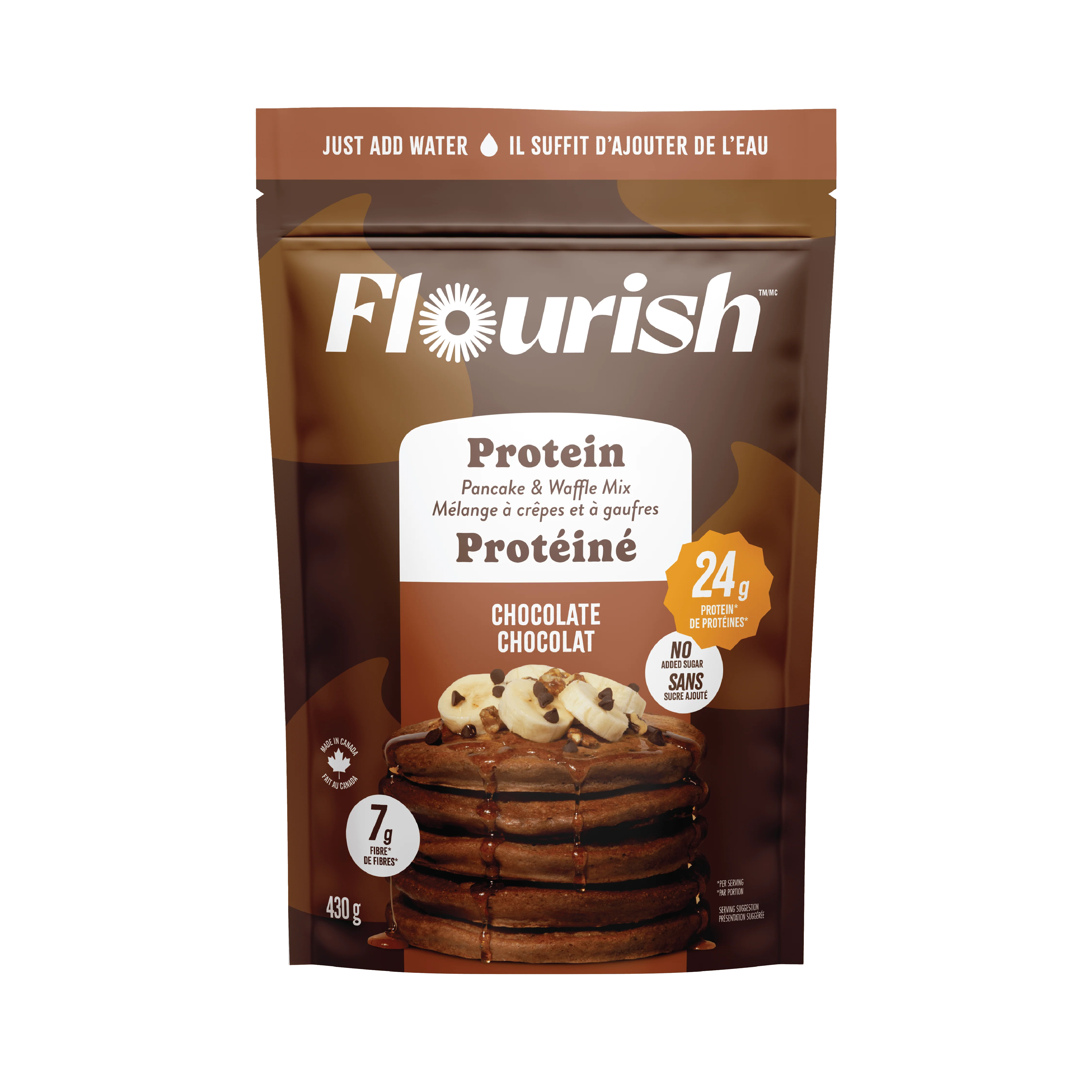 This pack has all the Flourish faves! It includes our 2 classic protein pancake mixes, Buttermilk and Chocolate, our new low sugar Breakfast Syrup and both our Maple Cinnamon and Blueberry Mug Cakes . Save $7 with these Flourish Faves today!Â